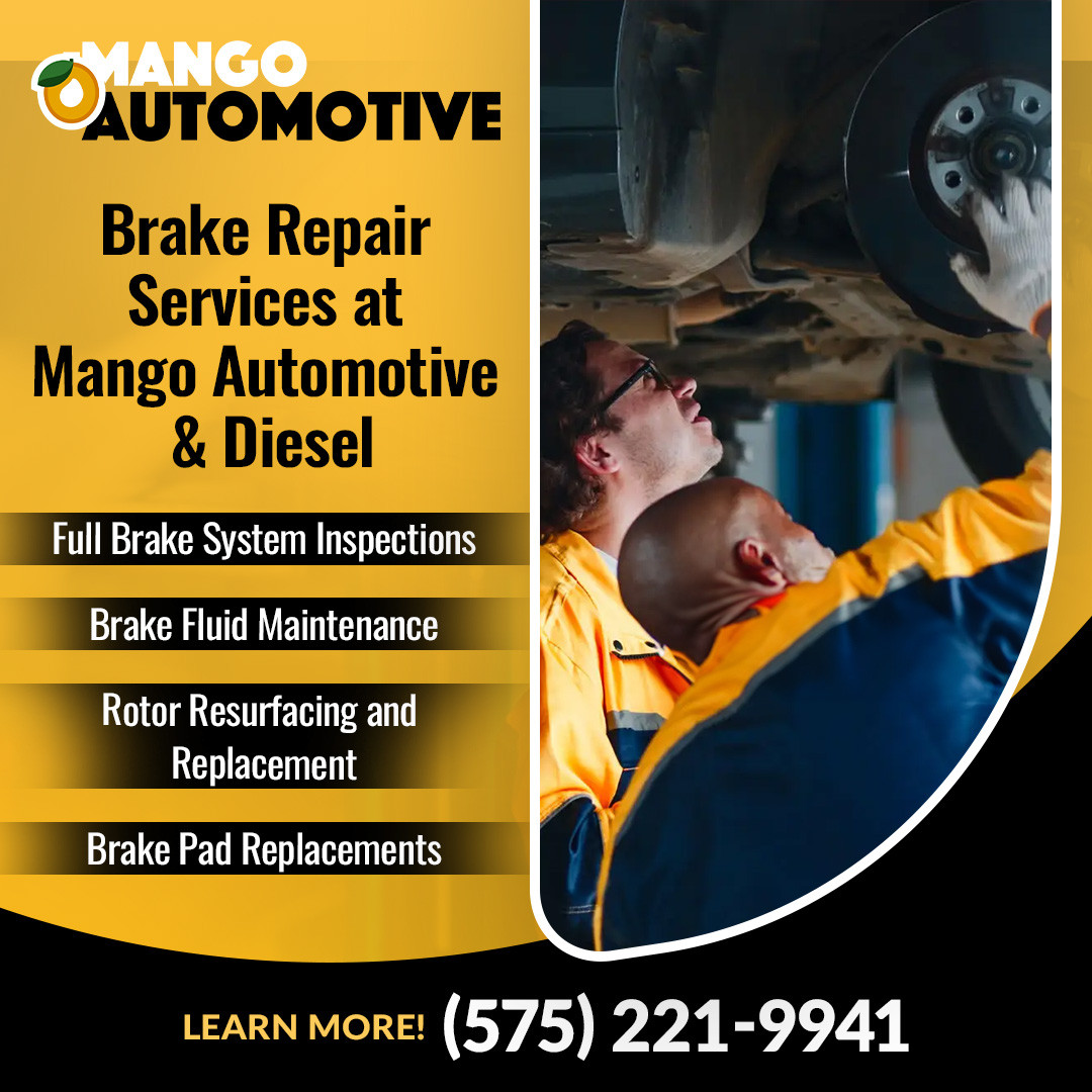 For those seeking reliable brake system inspections and expert repairs, Mango Automotive & Diesel is ready to assist. Contact their experienced team at (575) 221-9941 to schedule an appointment or learn more about their services.
